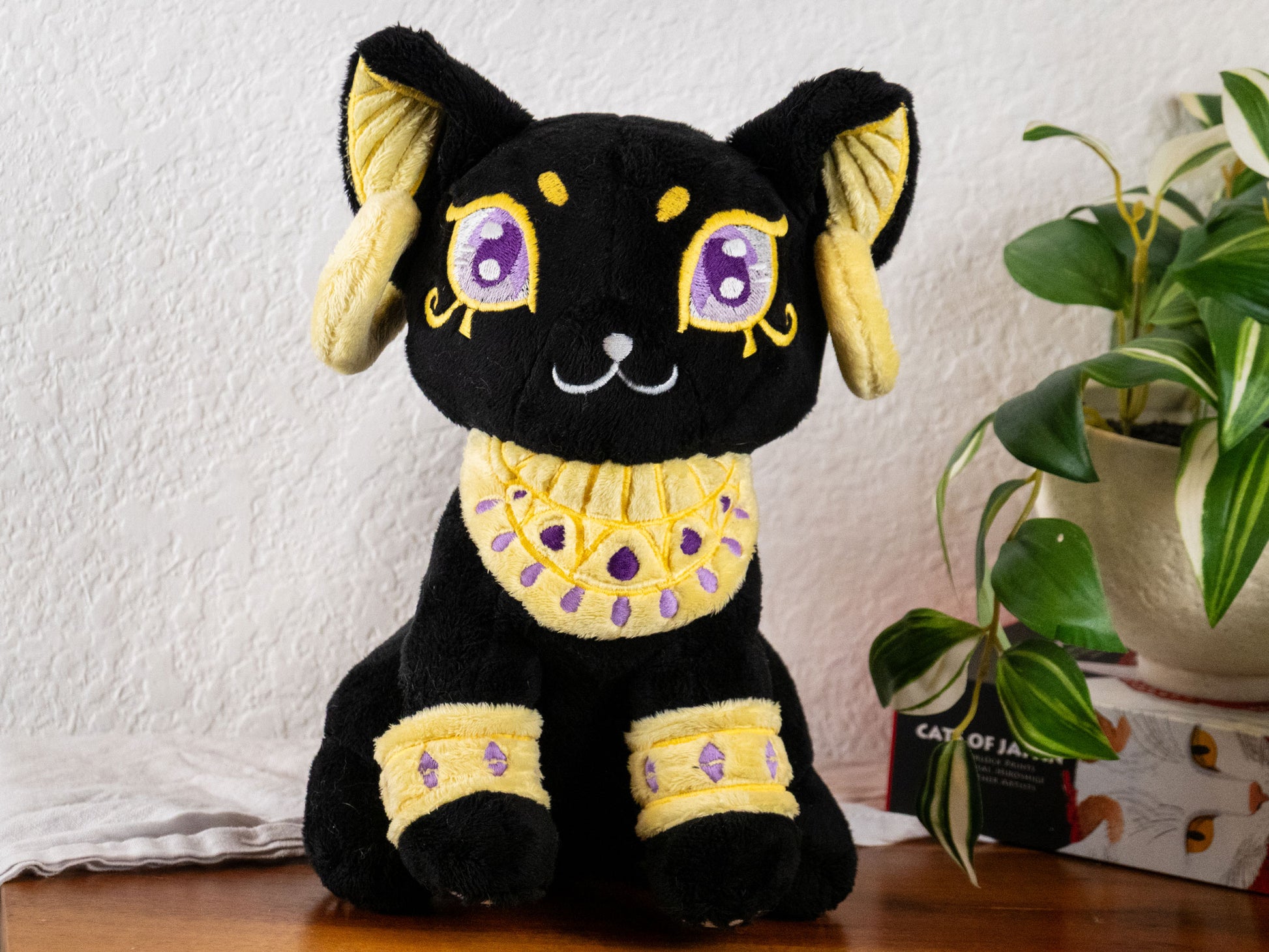 Who’s parading by? This Egyptian-inspired cat plush carries an air of confidence and quiet power. With its jeweled body, rounded shape, and poised presence, it feels striking and self-assured. Meant to be admired and enjoyed, this cat celebrates individuality, grace, and the beauty of standing tall in who you are.