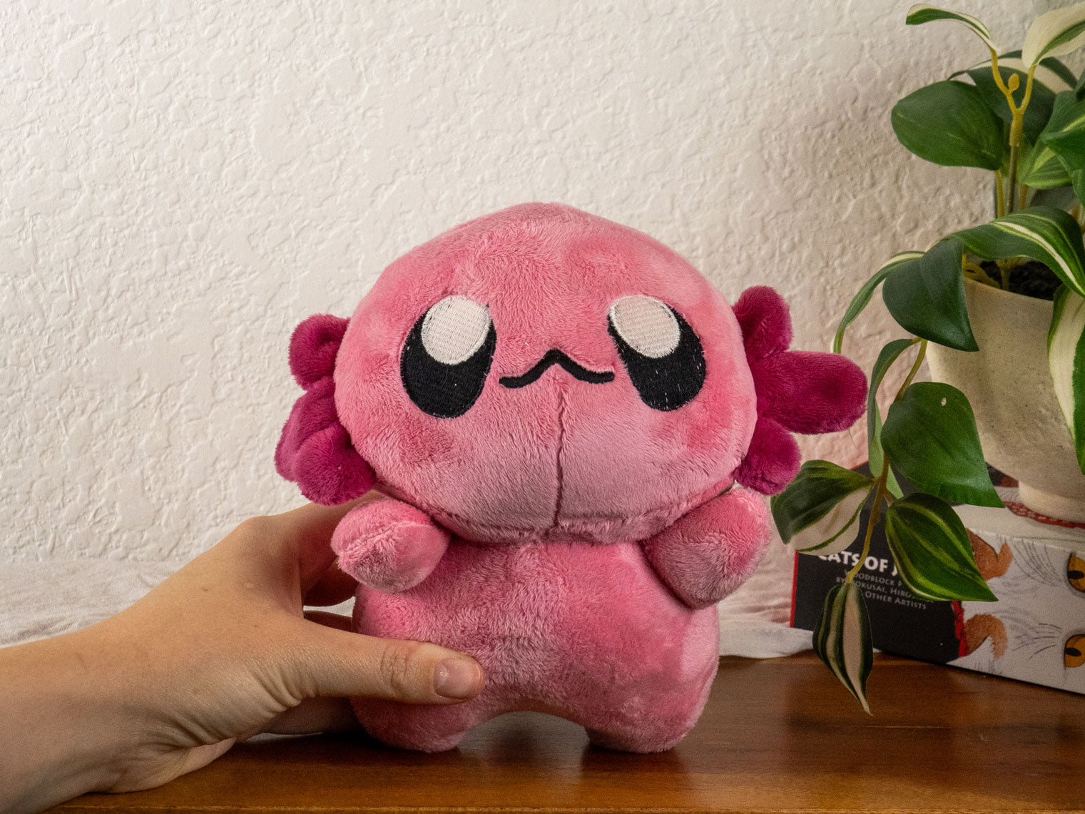 Who’s wiggling by? This axolotl plush is full of playful spirit and endearing goofiness. With its rounded shape and expressive face, it invites laughter and lighthearted fun. Best enjoyed with a friend, this axolotl embraces curiosity, individuality, and the happiness that comes from being unapologetically yourself.